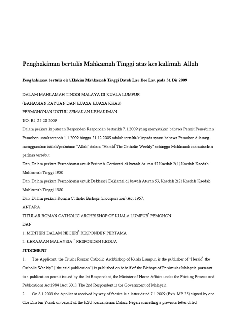 Penghakiman Bertulis Mahkamah Tinggi Atas Kes Kalimah Allah Konstitusi Amerika Serikat