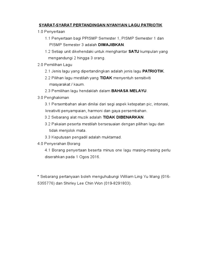 Syarat Pertandingan Nyanyian Lagu Patriotik