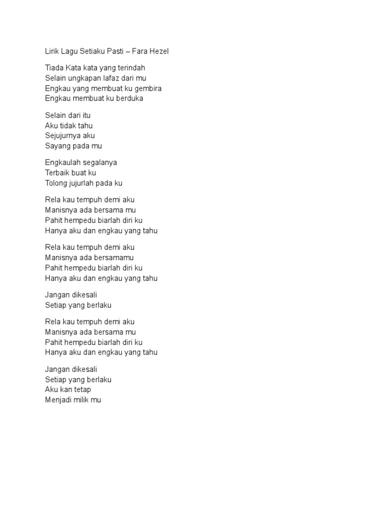 Fara Hezel Setiaku Pasti Lyrics Genius Lyrics