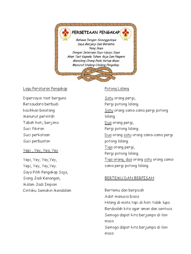 3 Lirik Lagu Pengakap Undang Undang Pengakap
