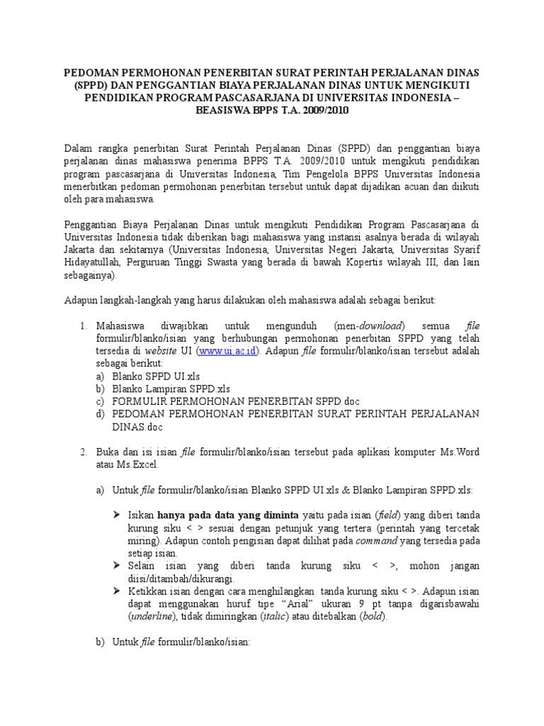 Pedoman Permohonan Penerbitan Surat Perintah Perjalanan Dinas
