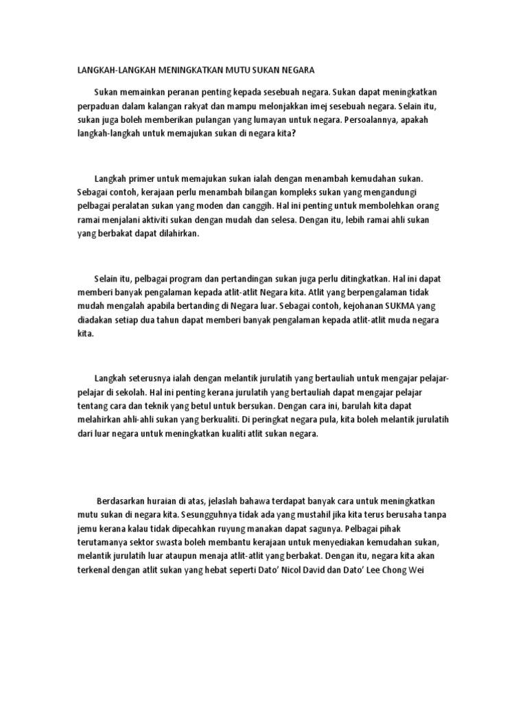 Langkah Langkah Meningkatkan Mutu Sukan Negara Docx