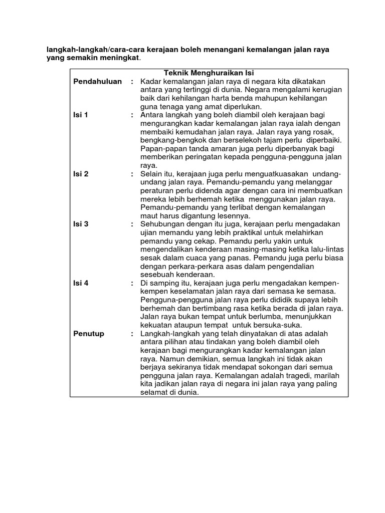 Karangan Langkah Langkah Mengurangkan Kemalangan Jalan Raya
