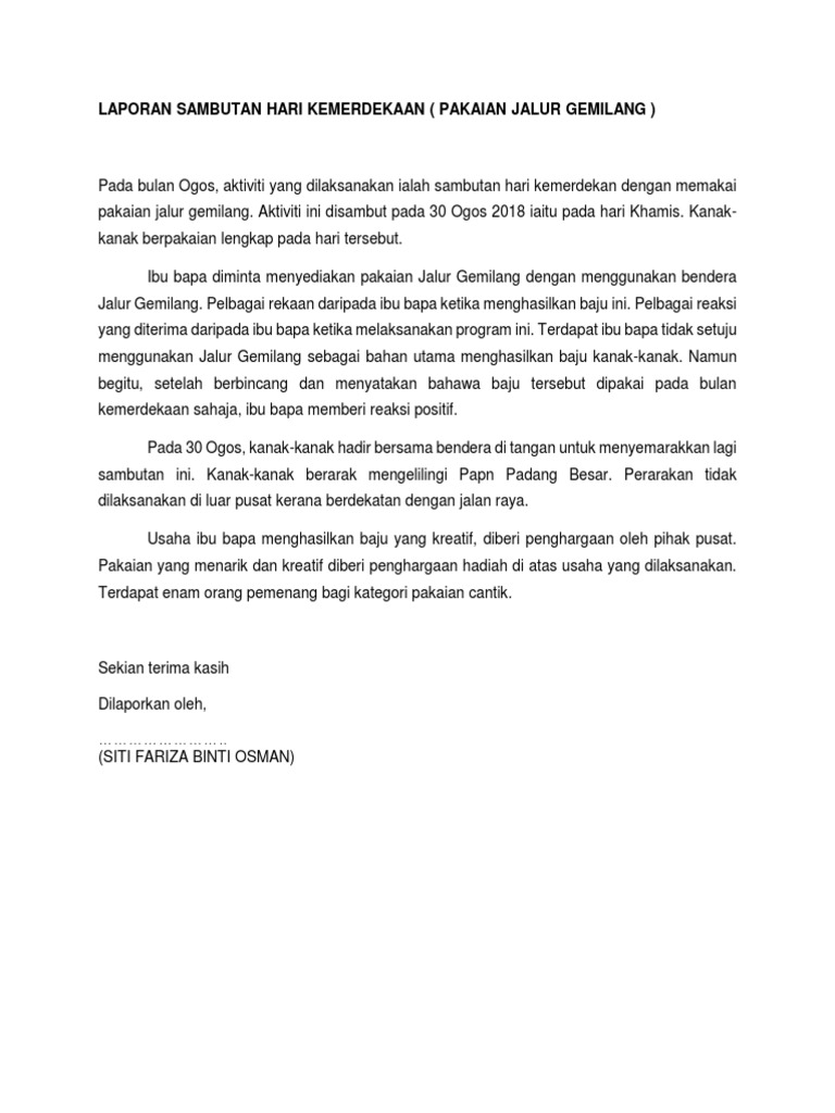 Contoh Karangan Laporan Sambutan Hari Kemerdekaan Di Sekolah Disclosing The Mind