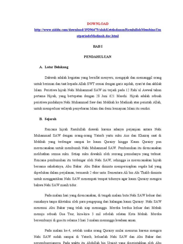 Makalah Keteladanan Rasulullah Membina Umat Periode Madinah