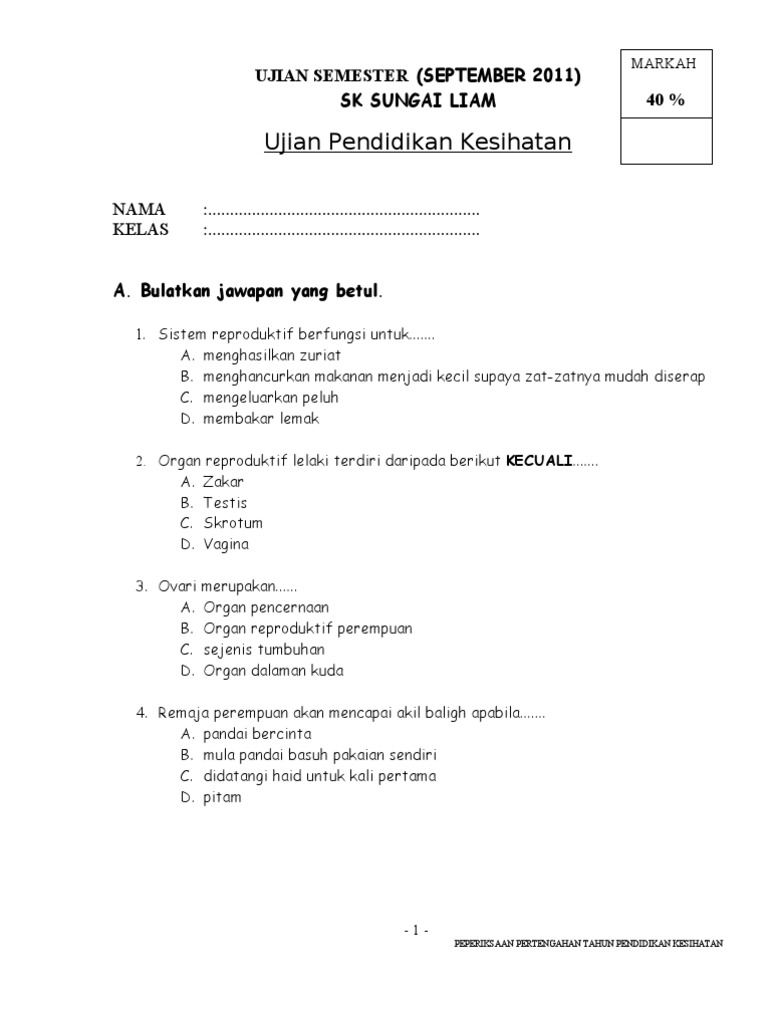 Ujian Pendidikan Kesihatan Tahun 4 5 Dan 6