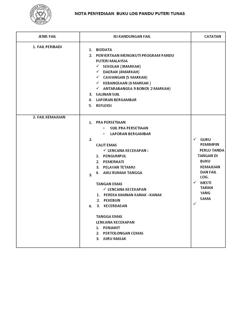 364493152 Nota Penyediaan Buku Log Pandu Puteri Tunas