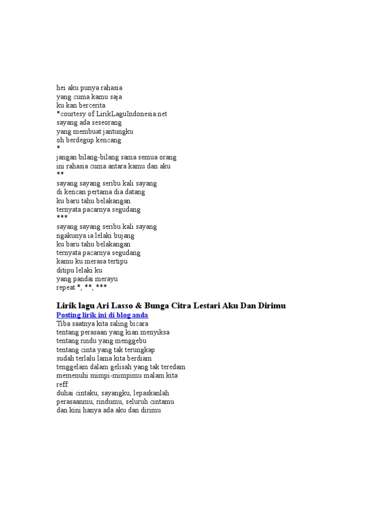 Lirik Lagu Ari Lasso Bunga Citra Lestari Aku Dan Dirimu Posting Lirik Ini Di Blog Anda