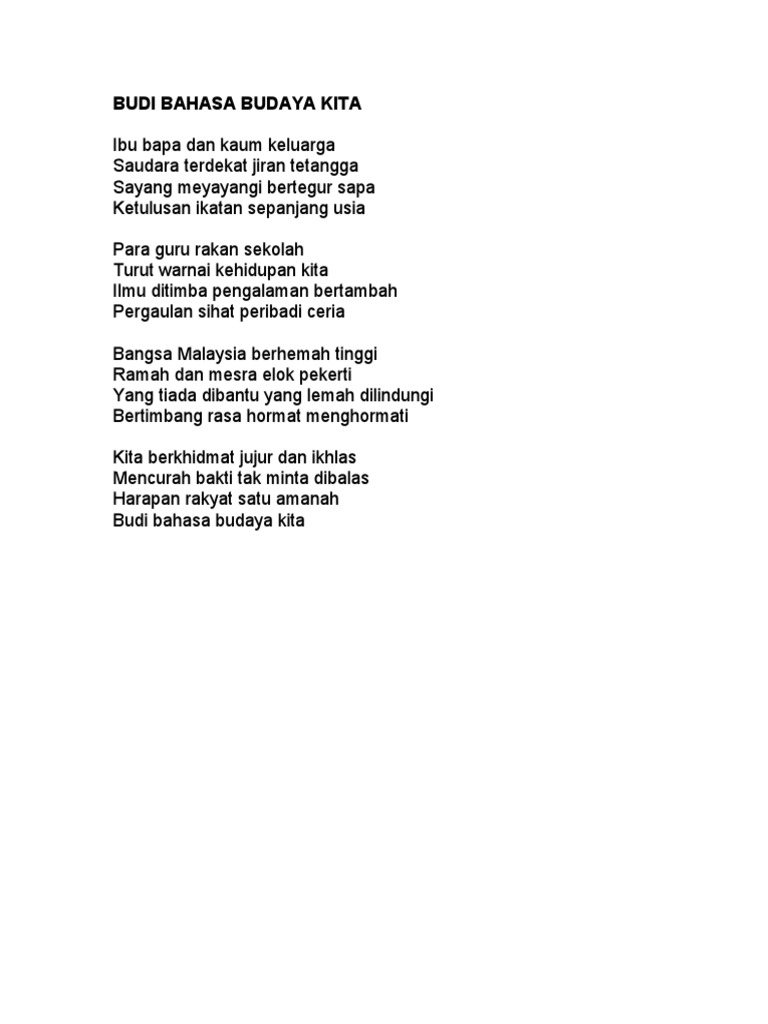 Lirik Lagu Budi Bahasa Budaya Kita Doc Document
