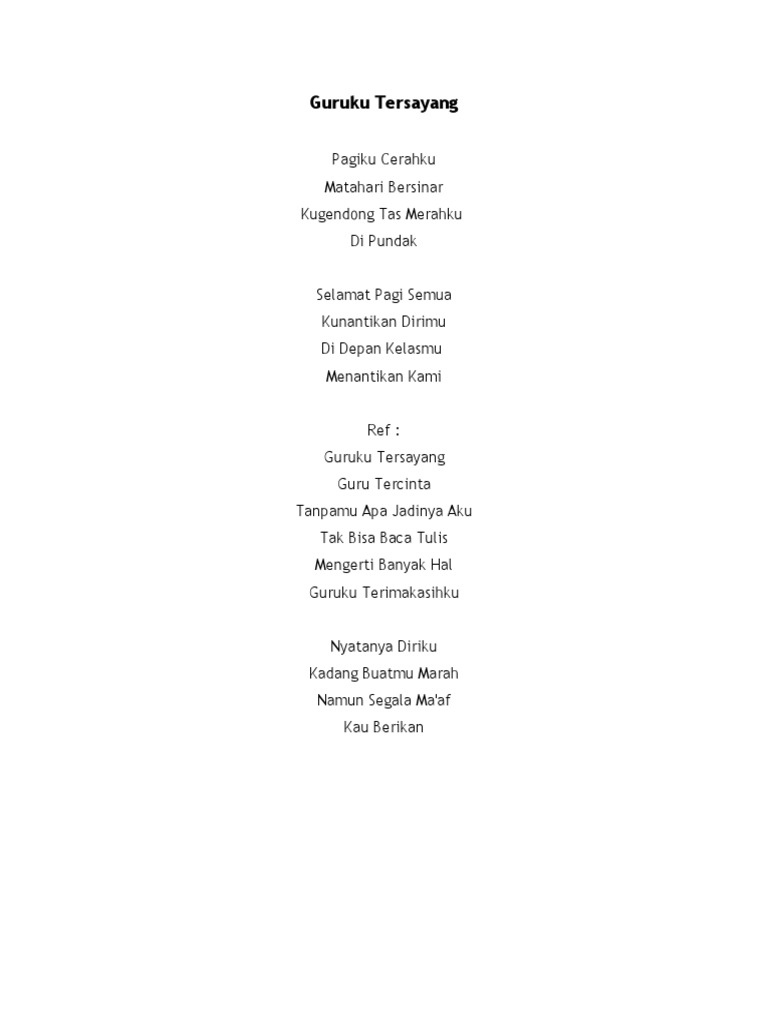 Lirik Lagu Guruku Tersayang