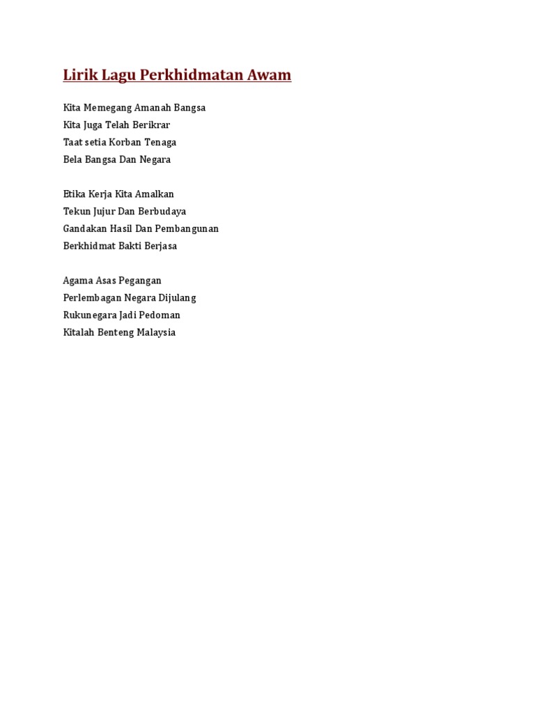 Doc Lirik Lagu Perkhidmatan Awam Abdul Rashid Abdul Razak Academia Edu