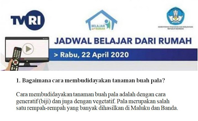 Jadwal Pelajaran Tvri Rabu 22 April 2020 Rangkuman Soal Jawaban Tumoutounews