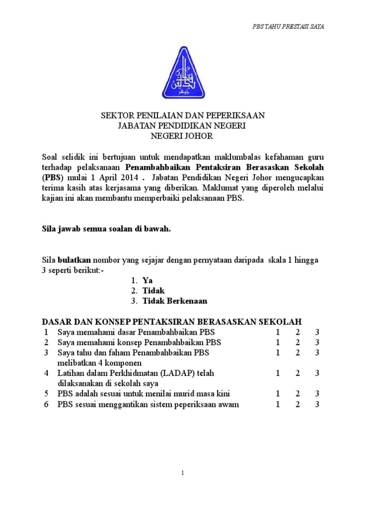 Soal Selidik Penambahbaikan Pbs Johor