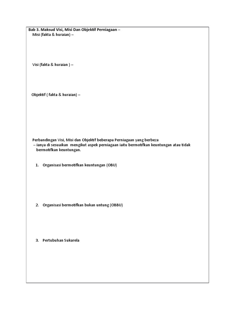 Tajuk 2 Organisasi Perniagaan Bab 3 Penetapan Visi Misi Dan Objektif Perniagaan Nama Tarikh Kelas 3 1 Maksud Visi Misi Dan Objektif Perniagaan