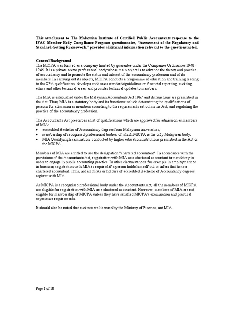 Malaysian Institute Of Accountants Ifac