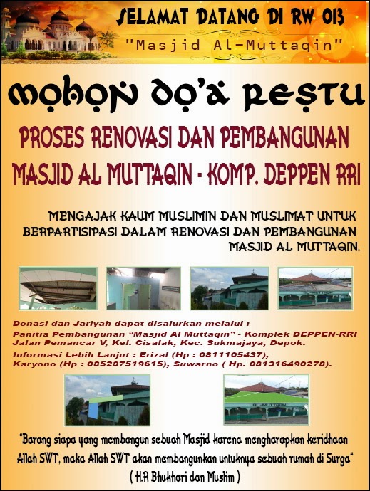 Komplek Deppen Rri Rt 002 Rw 013 Kel Cisalak Kec Sukmajaya Kota Depok Propinsi Jawa Barat Renovasi Masjid Al Muttaqin