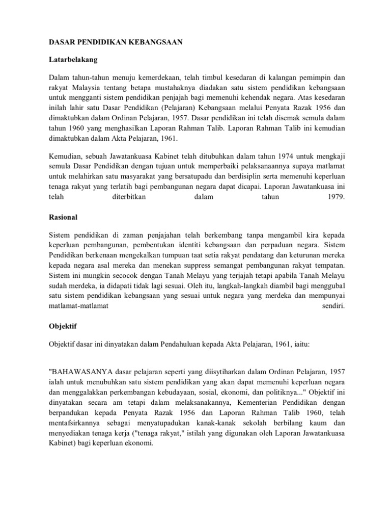 Contoh Dasar Pendidikan Kebangsaan