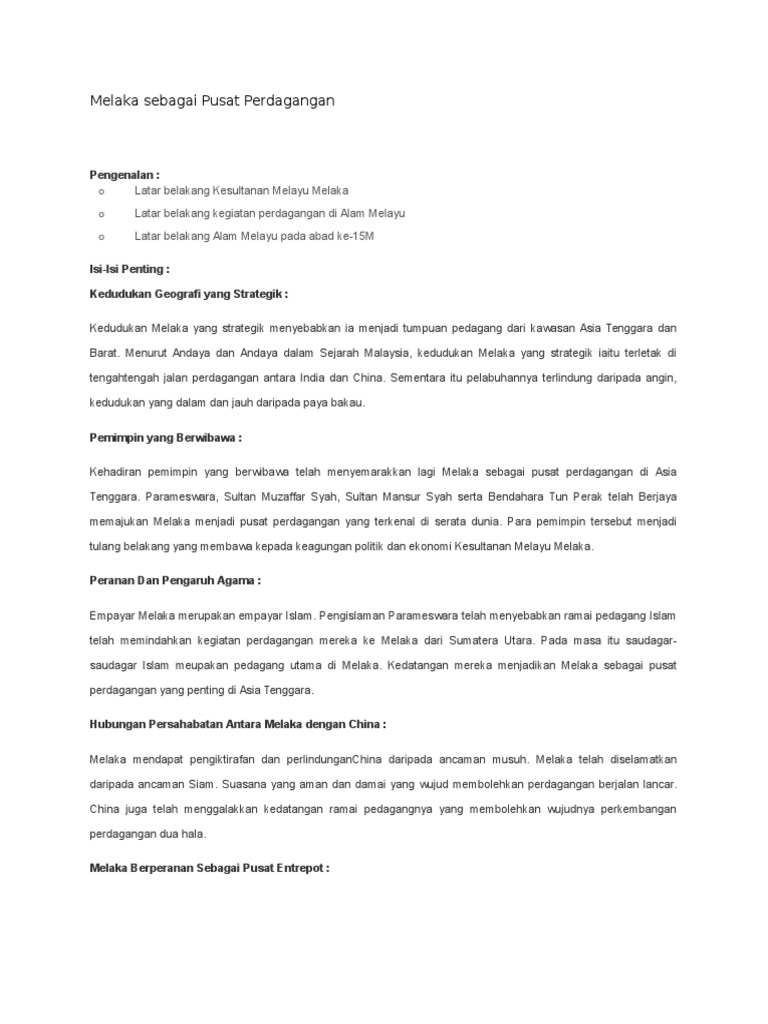 Melaka Sebagai Pusat Perdagangan Pdf Document