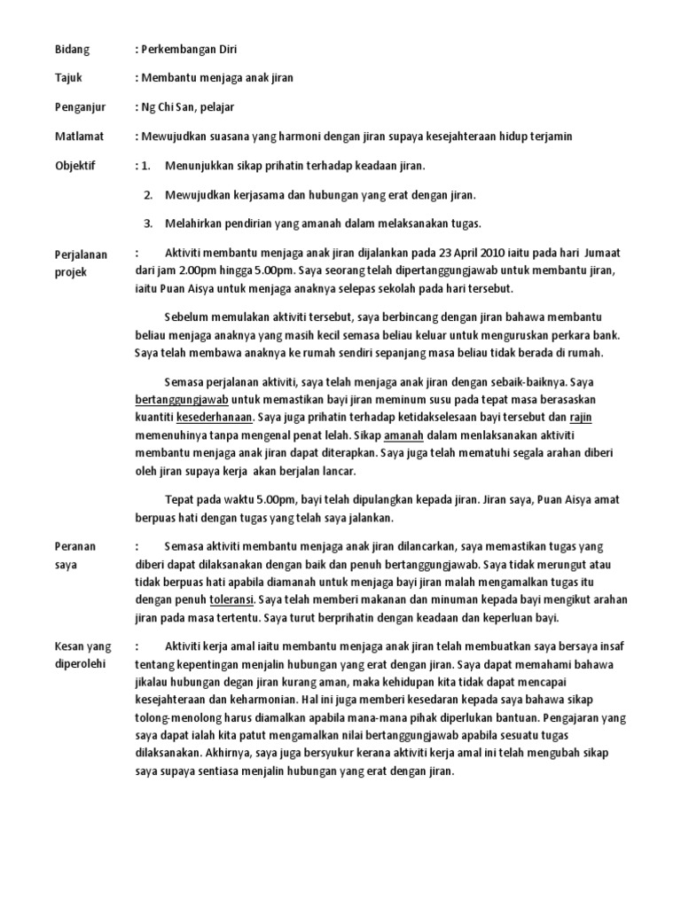 33105847 Kerja Amal Pendidikan Moral Bidang Perkembangan Diri Tajuk Membantu Menjaga Anak Jiran Penganjur Ng Chi San Pelajar Matlamat Mewujudkan Course Hero