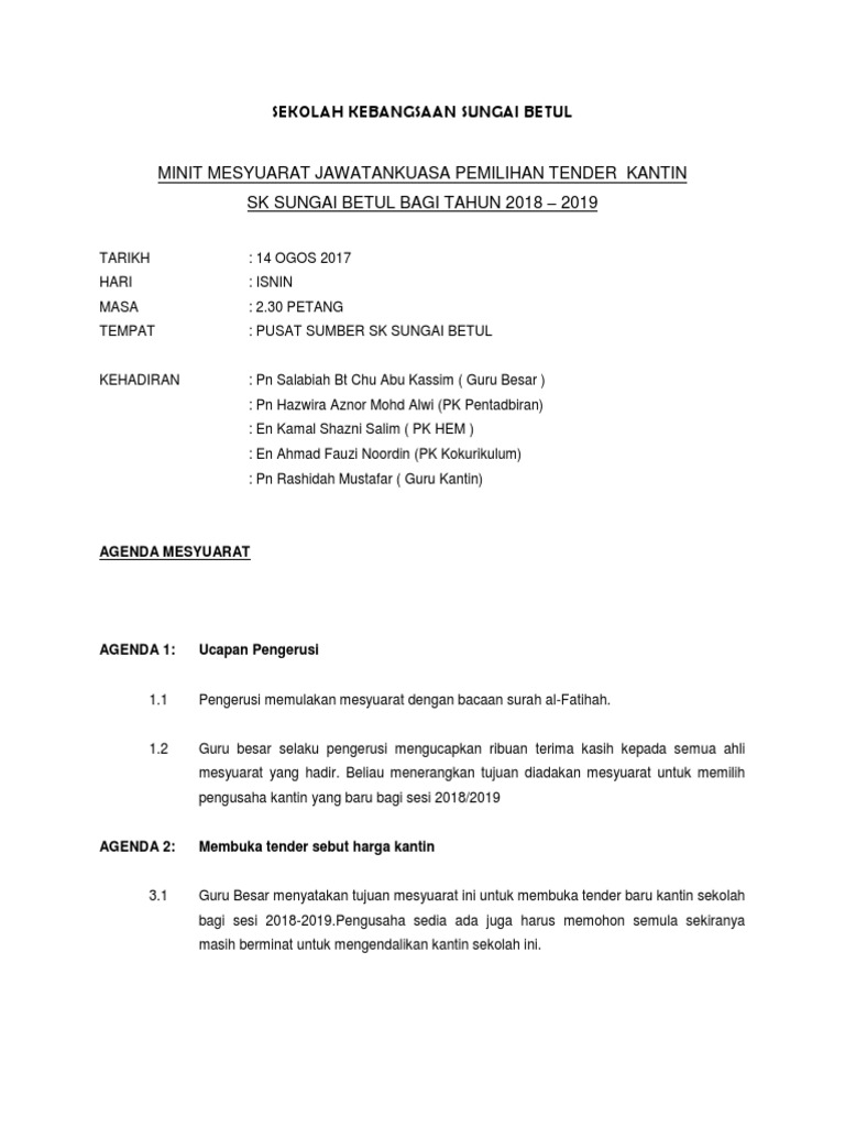 Doc Contoh Format Minit Mesyuarat Wawa Wawa Academia Edu