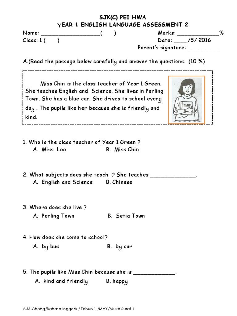 English Year 1 Assessment 1 Pdf Languages