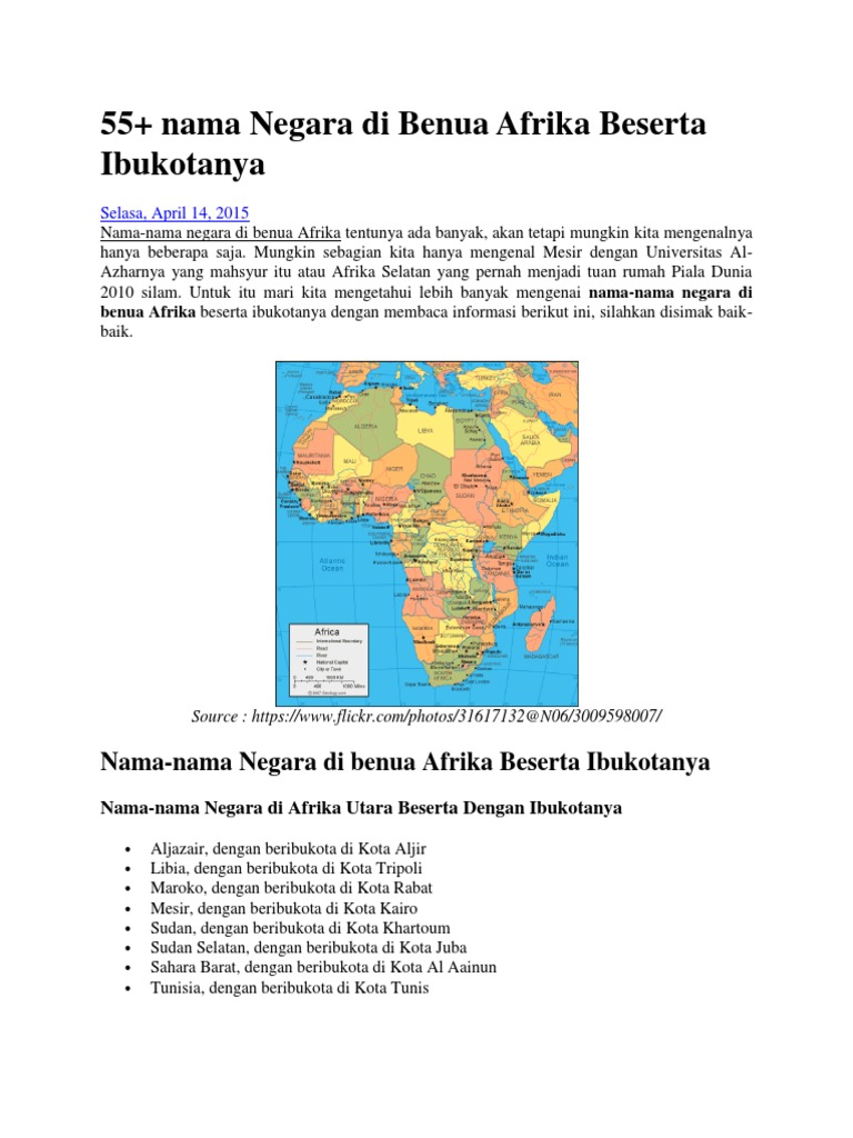 Nama Negara Di Benua Afrika Beserta Ibukotanya Tugas Sekolah Ku