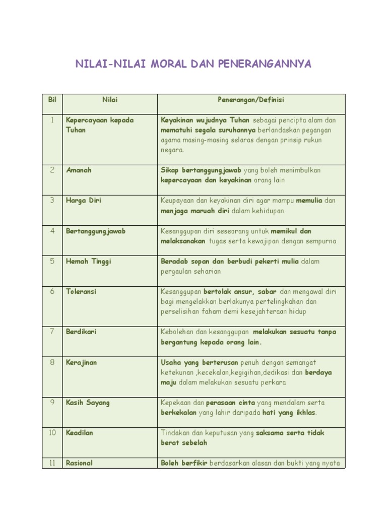 Nilai Nilai Moral Dan Contoh Huraian
