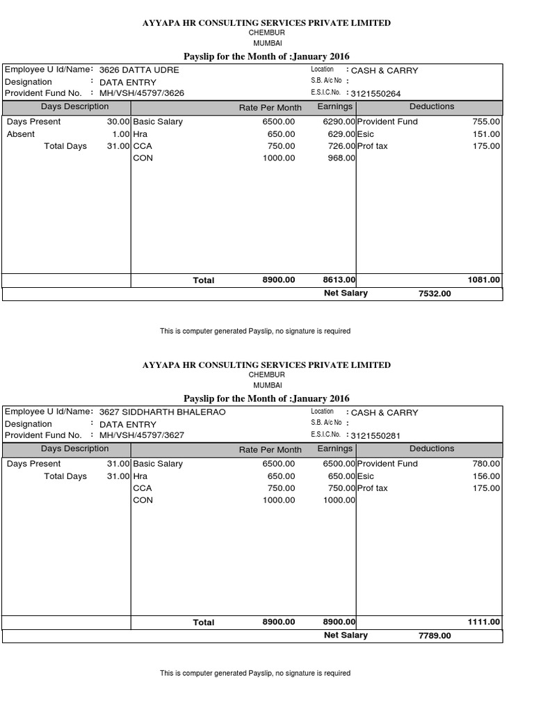 Cash And Cary Payslip Jan 2016 Pdf Social Programs Salary