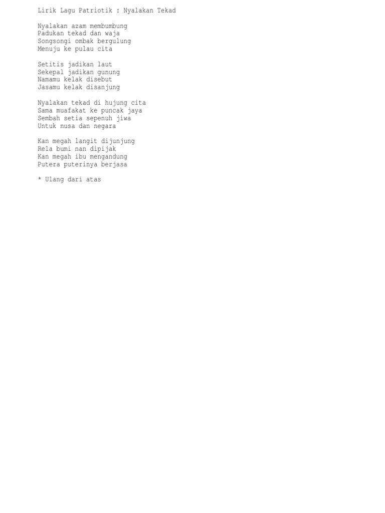Nyalakan Tekad Lirik Lagu Patriotik