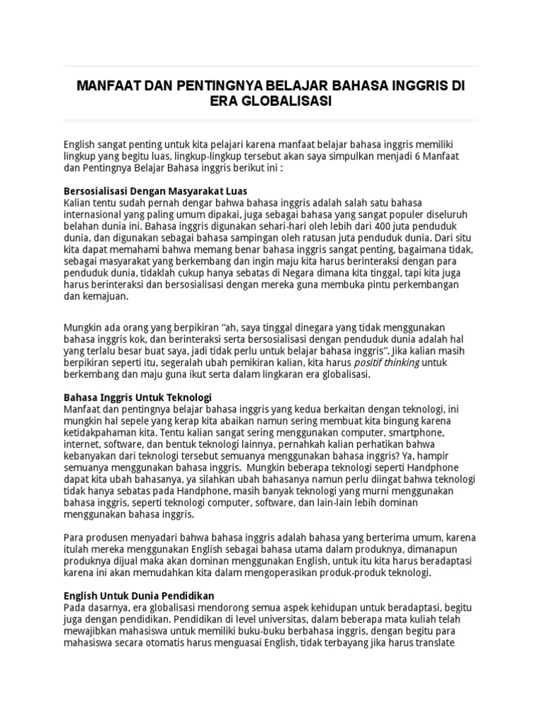 Doc Pentingnya Bahasa Inggris Dalam Era Globalisasi Annisa Pratiwi Nursalam Academia Edu
