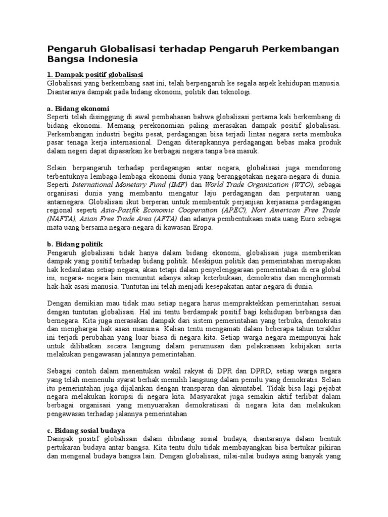 Pengaruh Globalisasi Terhadap Pengaruh Perkembangan Bangsa Indonesia