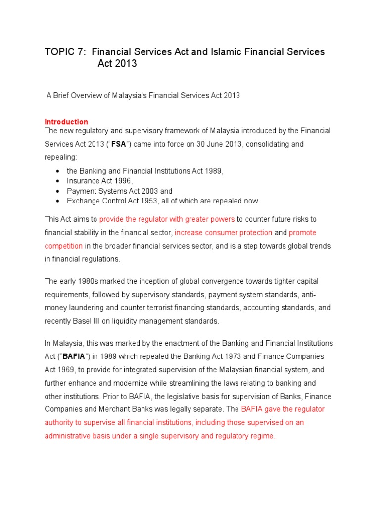 Overview Of Financial Services Act 2013 Islamic Banking And Finance Regulatory Compliance