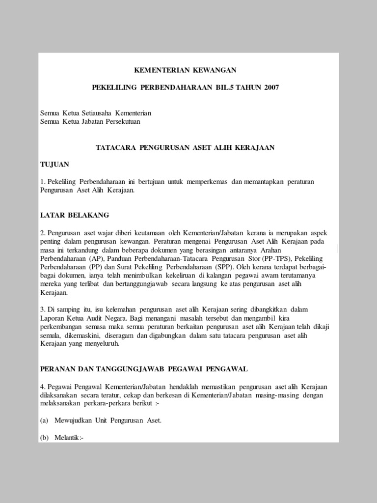 Kementerian Kewangan Pekeliling Perbendaharaan Bil 5 Tahun 2007