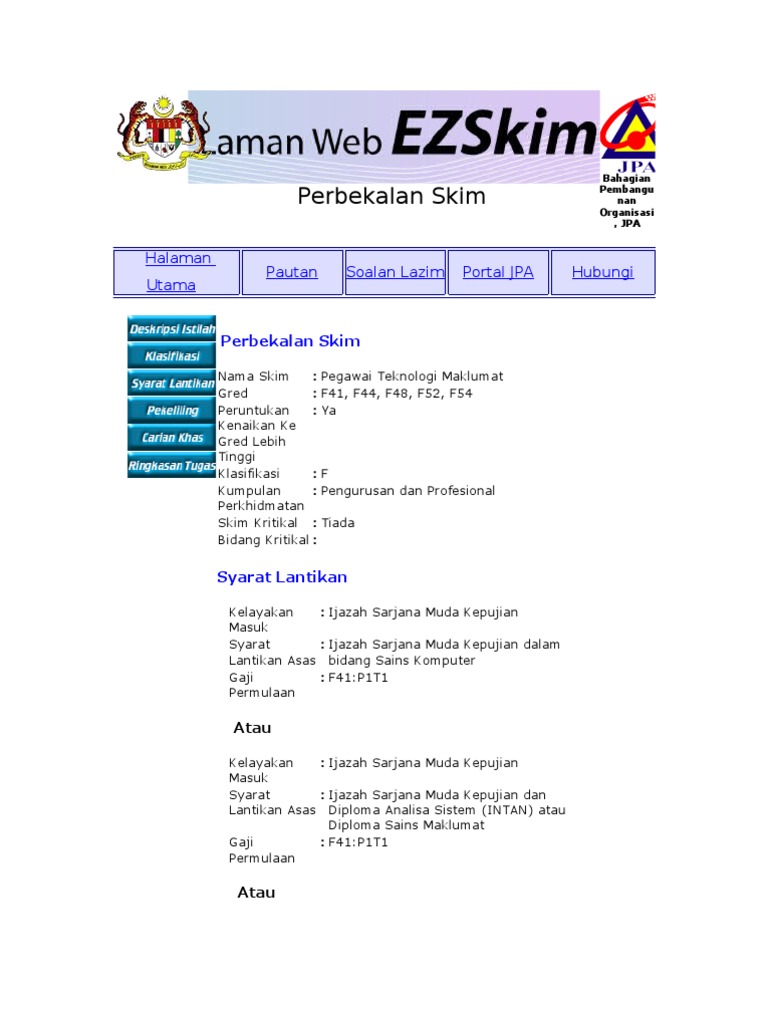 Skim Perkhidmatan Pegawai Teknologi Maklumat Klasifikasi