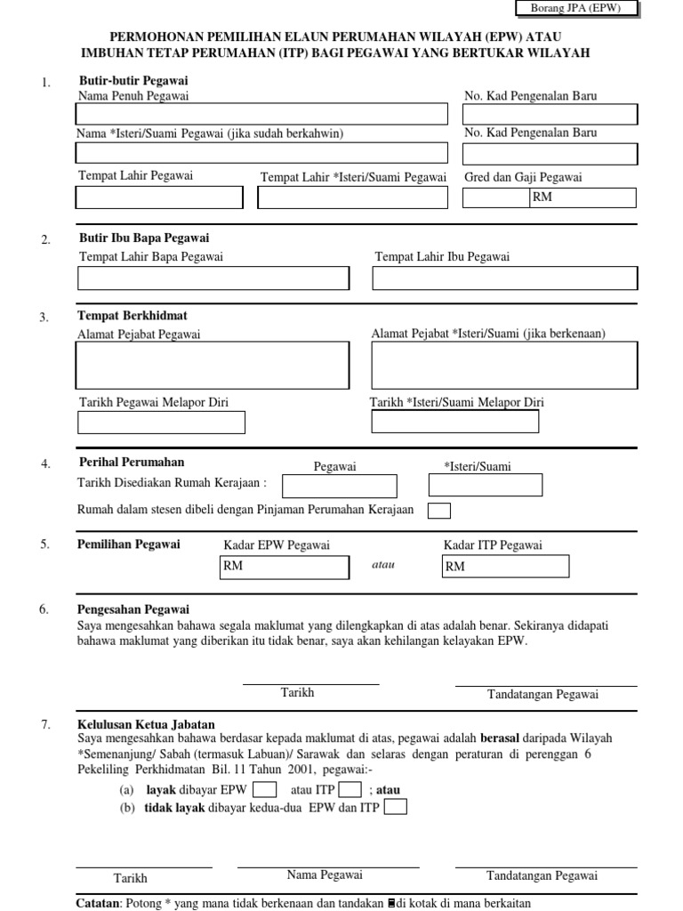 Borang Permohonan Elaun Perumahan Wilayah Epw