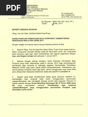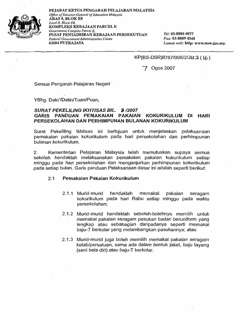 Surat Pekeliling Ikhtisas Bil 82007 Garis Panduan Pemakaian Pakaian Kokurikulum Di Hari Persekolahan Dan Perhimpunan Bulanan Kokurikulum