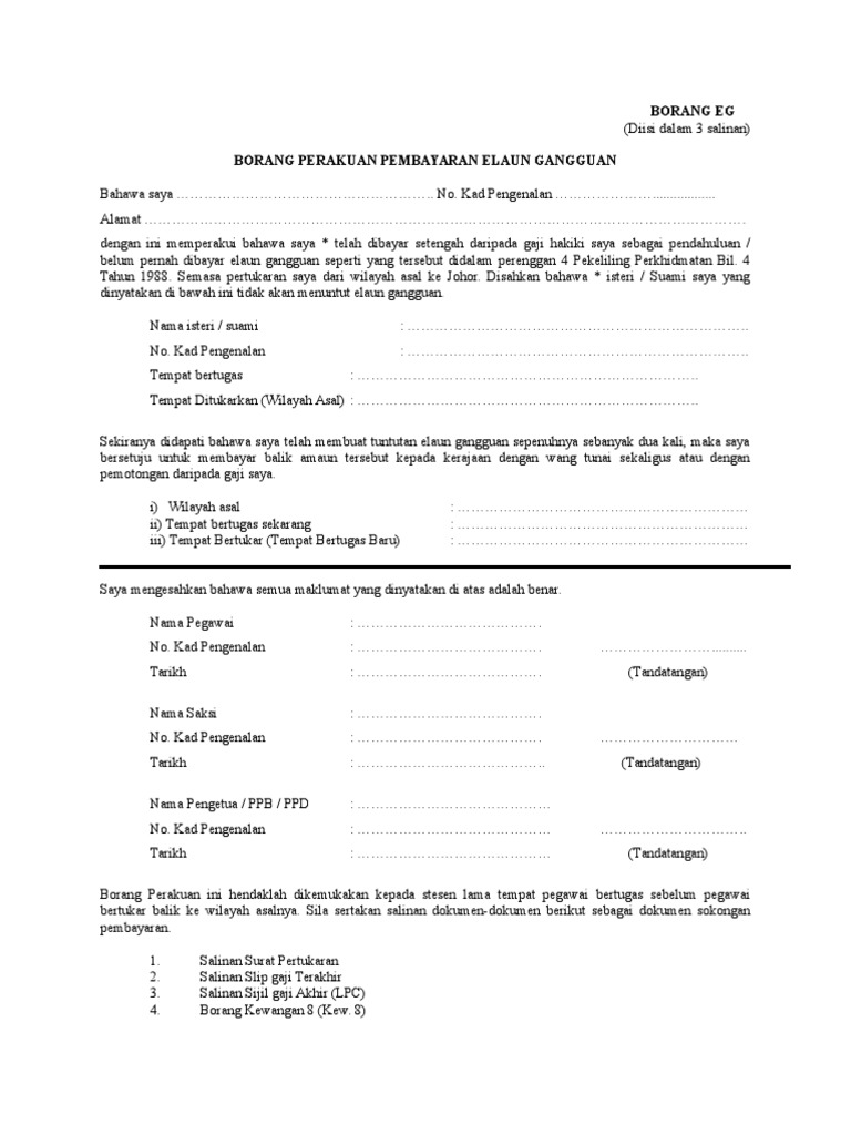 Borang Elaun Gangguan Eg