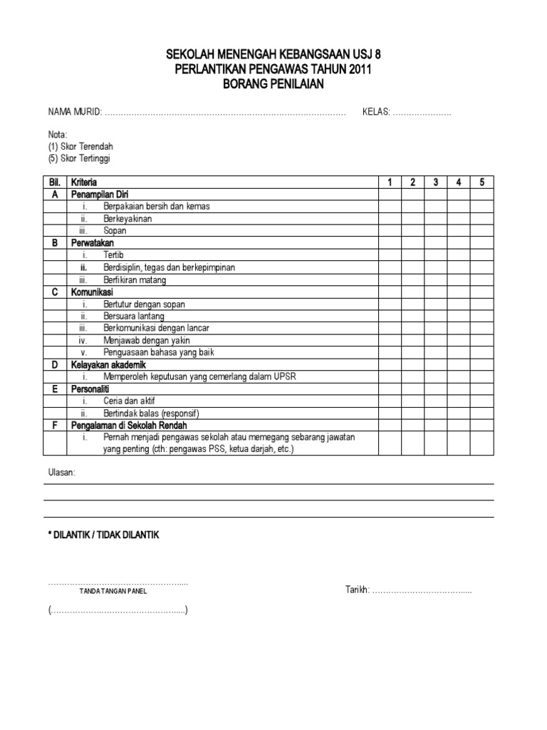 Borang Penilaian