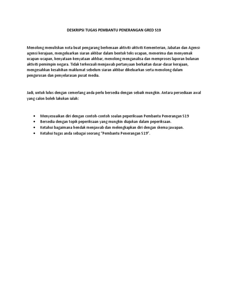 Contoh Soalan Peperiksaan Pembantu Penerangan S19 Contoh Resume