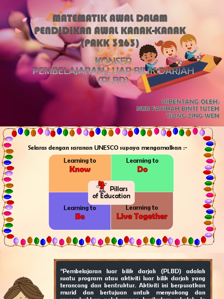 Ini adalah selaras dengan saranan unesco supaya mengamalkan four pillars of education. Pembelajaran luar bilik darjah plbd adalah suatu program atau aktiviti luar bilik darjah yang teran ang dan berstruktur. Kaedah pembelajaran luar bilik darjah.