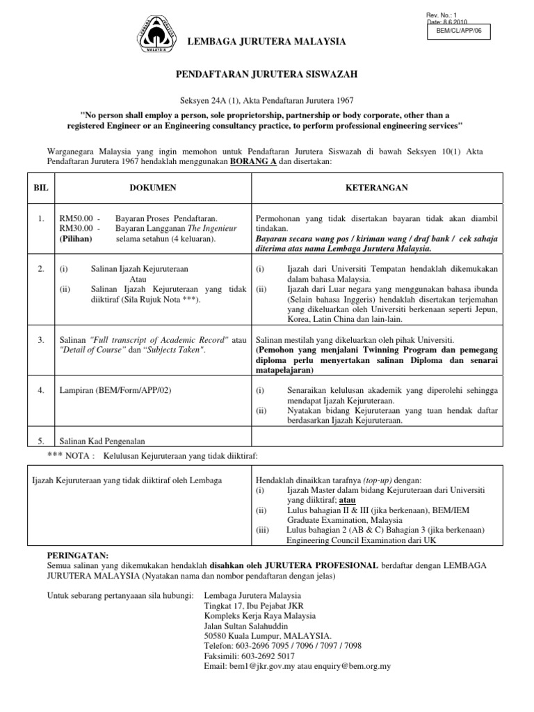 Pdf Lembaga Jurutera Malaysia Pendaftaran Jurutera Siswazah Ayerkeroh Melaka Academia Edu