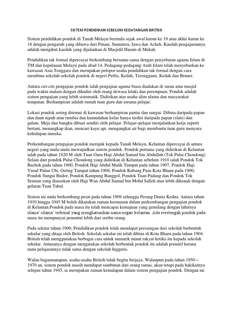 Sistem Pendidikan Sebelum Kedatangan British