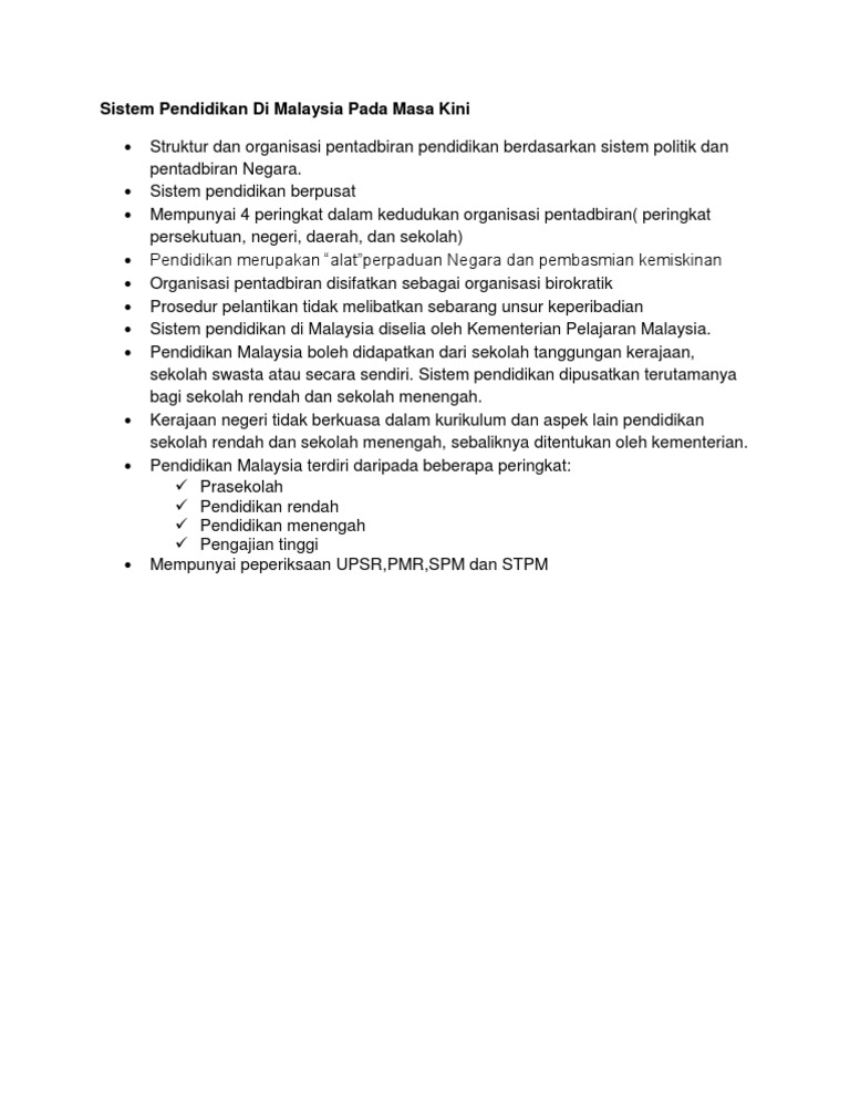 Sistem Pendidikan Di Malaysia Pada Masa Kini
