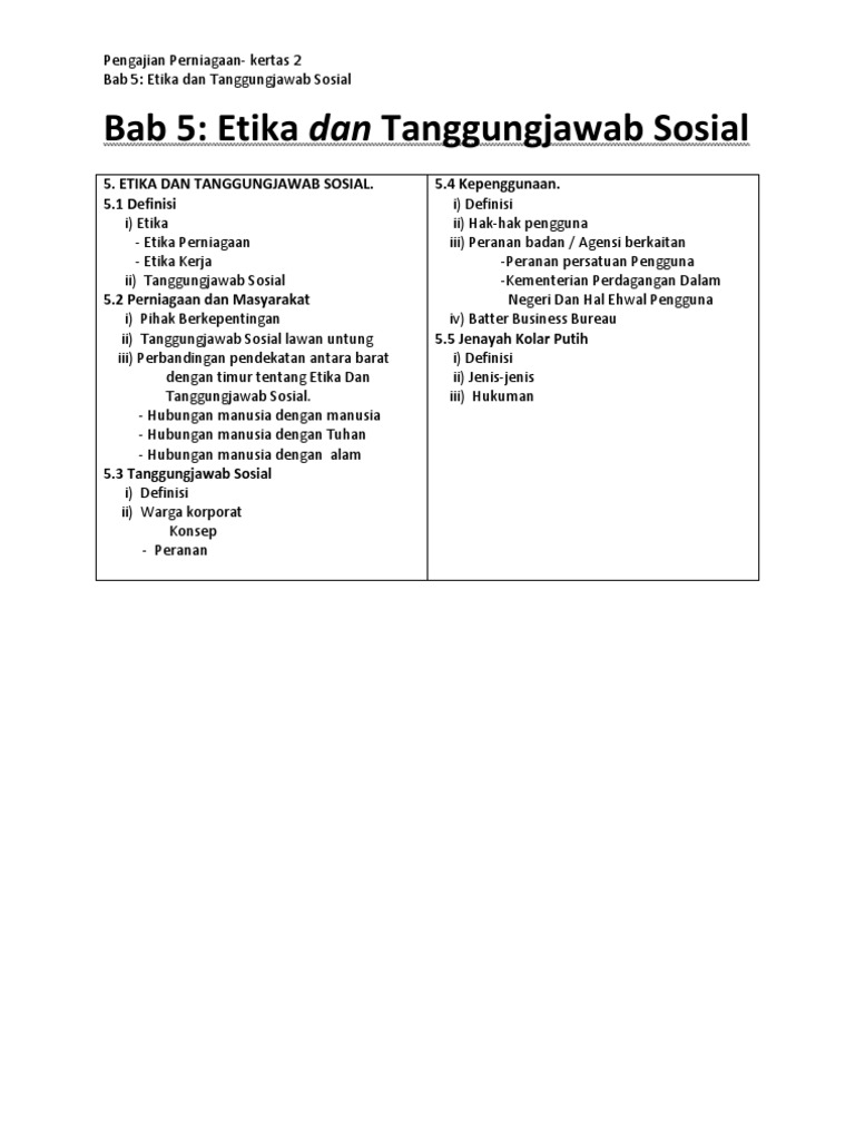 Pengajian Perniagaan Bab 5 Etika Dan Tanggungjawab Sosial Kertas 2