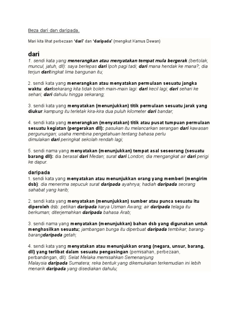 Perbezaan Dari Dan Daripada Tahun 5 Tatabahasa Youtube