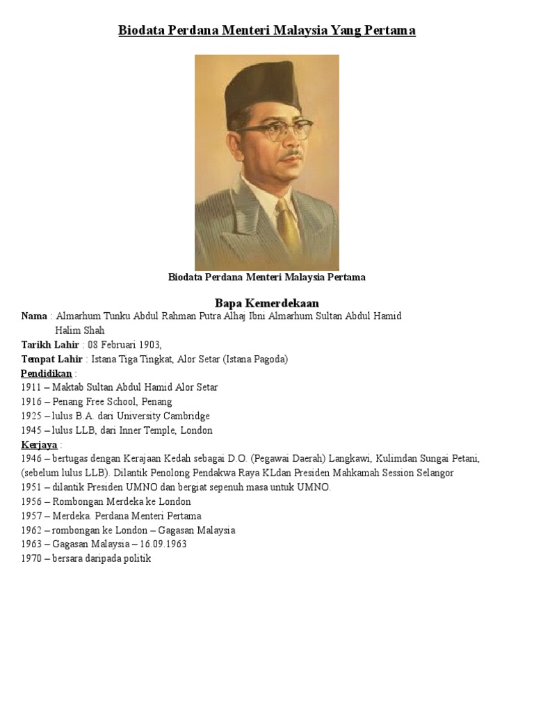 Biodata Perdana Menteri Malaysia Yang Pertama Biodata Perdana Menteri Malaysia Malaysia Diy And Crafts Fails