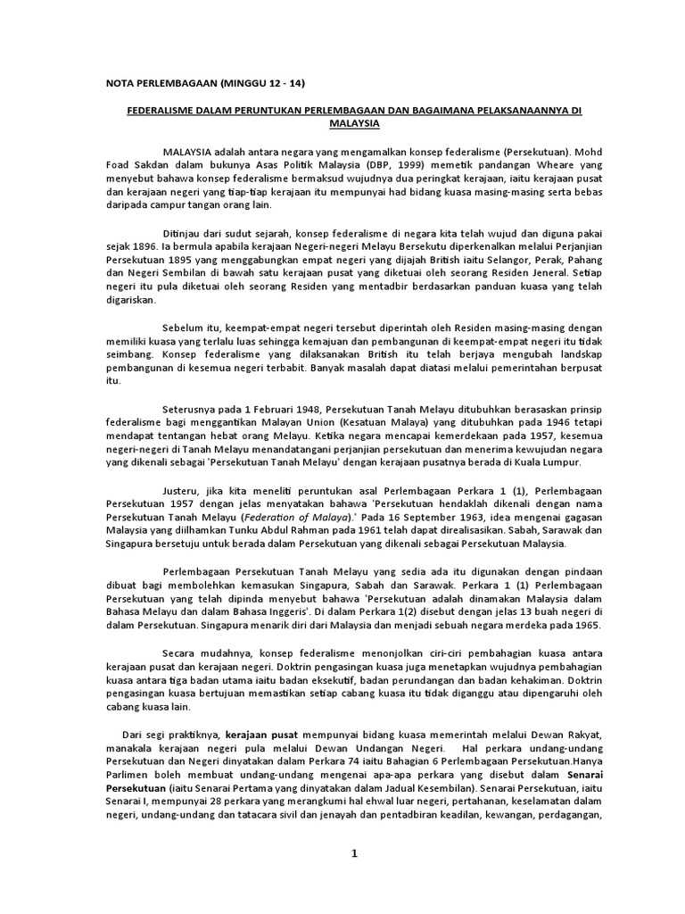 Federalisme Dalam Peruntukan Perlembagaan Dan Bagaimana Pelaksanaannya Di Malaysia