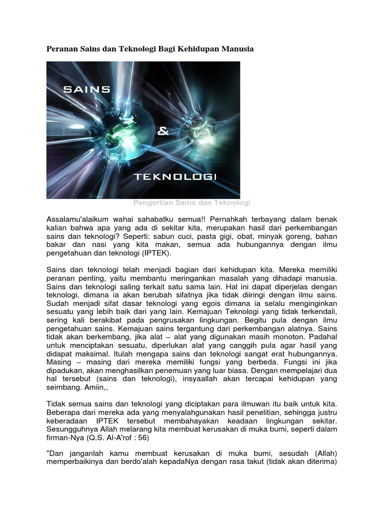 Doc Contoh Makalah Sains Dan Teknologi Dalam Kehidupan Manusia Exo Saranghae Academia Edu