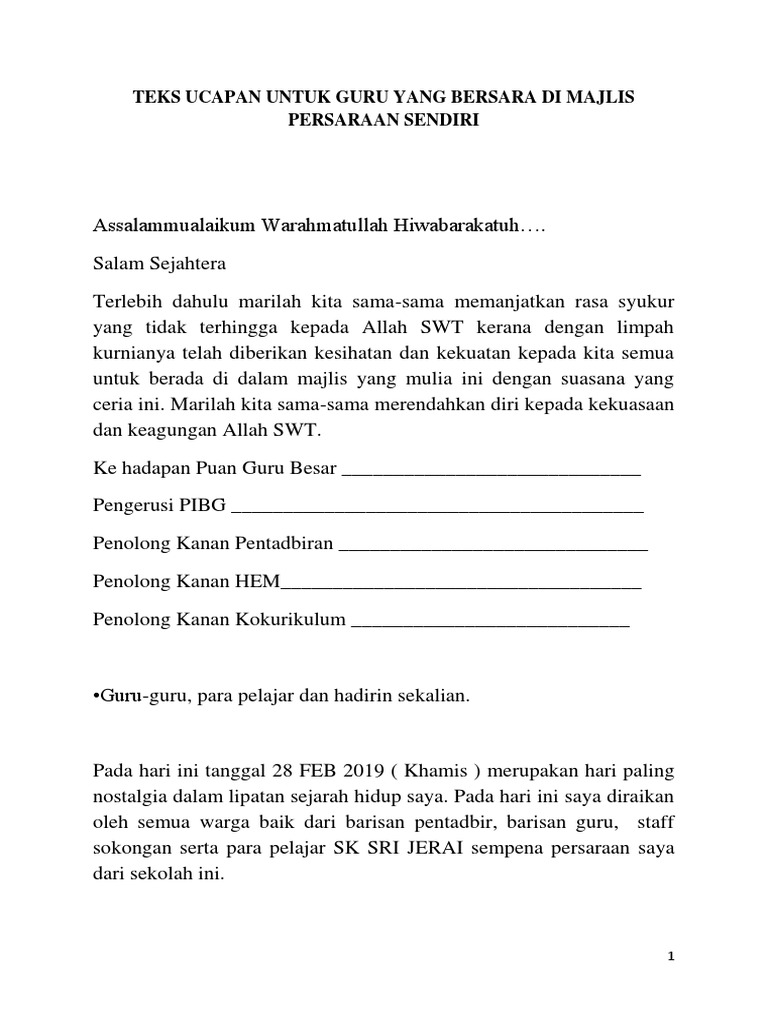 Doc Contoh Ucapan Wakil Murid Untuk Majlis Persaraan Linda Husin Academia Edu