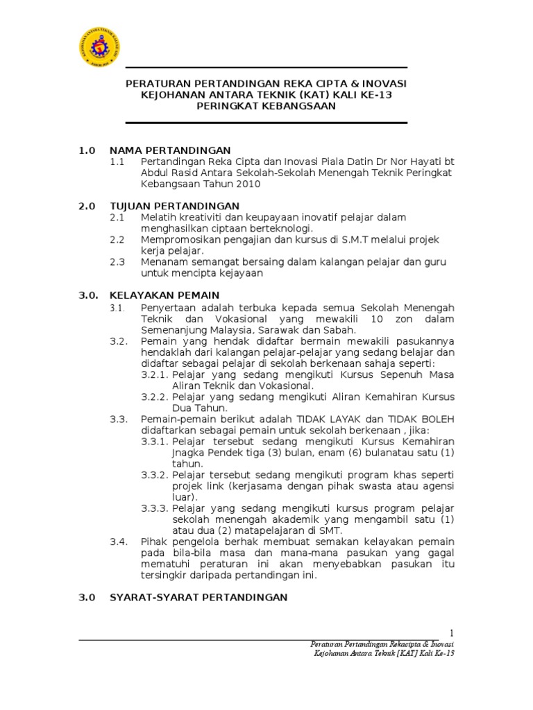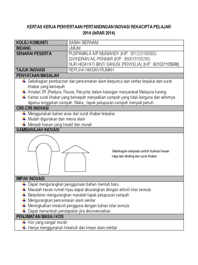 Kertas Kerja Penyertaan Pertandingan Inovasi Rekacipta Pelajar 2014